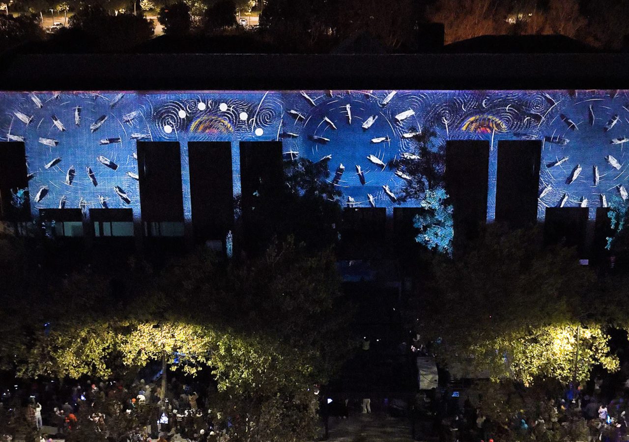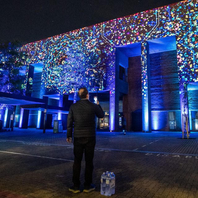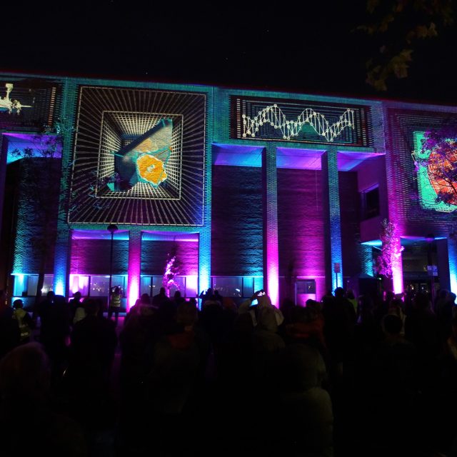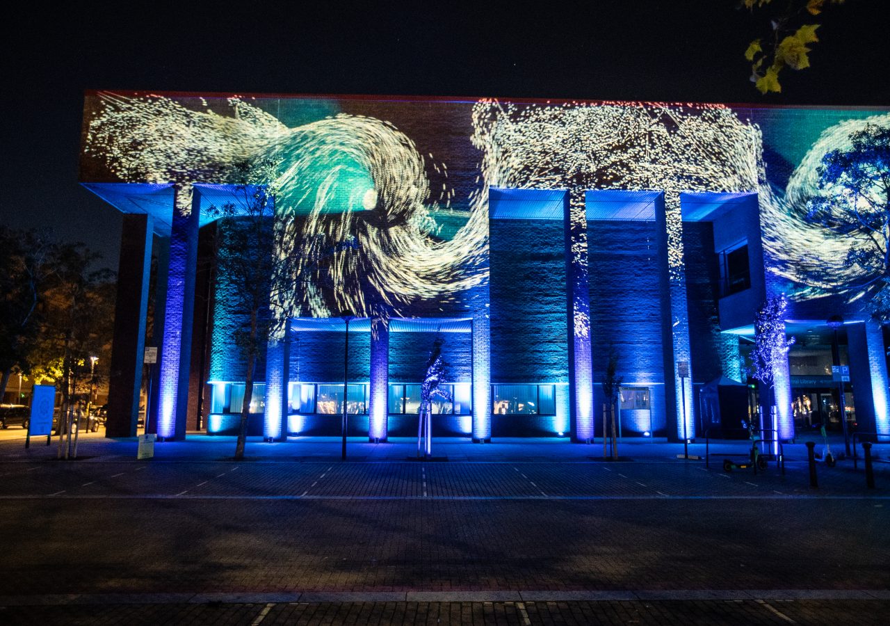 A projection mapping spectacle that transforms the façade of Milton Keynes Library into a canvas for the cosmos. As light, sound, and science intertwine, the architecture becomes a gateway through time and space, immersing audiences in a journey from the chaos of the Big Bang to ancient stargazing and the breathtaking clarity of deep-space imagery.